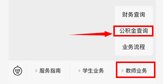 第一步:点击右下角“教师业务”,选择“公积金查询”。