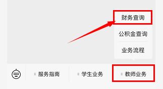 第二步:点击右下角“教师业务”,选择“财务查询”。
