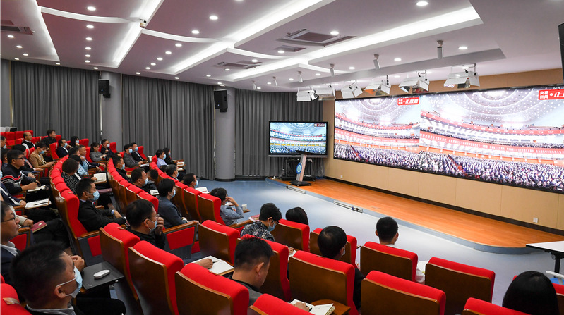 10月16日上午,举世瞩目的中国共产党第二十次全国代表大会在北京人民大会堂隆重开幕。我校党委理论学习中心组全体成员、14个二级党总支(直属党支部)、48个基层党支部,共计700余名师生党员以及团学干部代表,通过18个分会场集中收看党的二十大开幕会,认真聆听习近平总书记代表第十九届中央委员会向大会作了题为《高举中国特色社会主义伟大旗帜为全面建设社会主义现代化国家而团结奋斗》的报告。