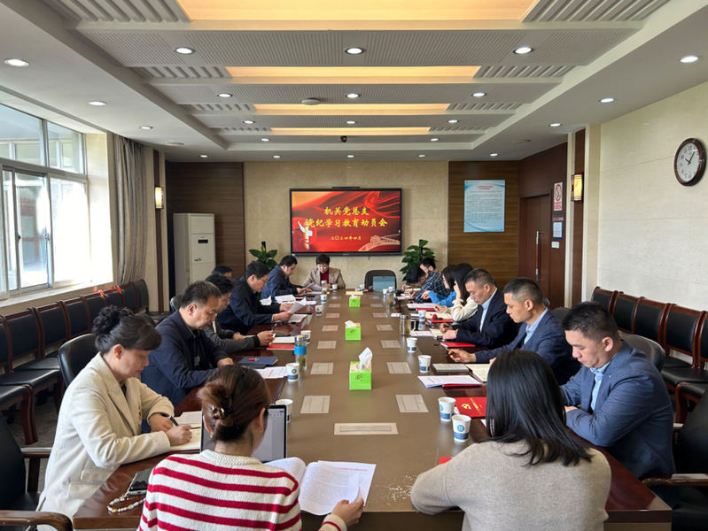 4月18日上午10:00,机关党总支在办公楼319会议室召开党纪学习教育动员部署会。机关各党支部书记、部门负责人参会,会议由机关党总支书记刘昊主持。
