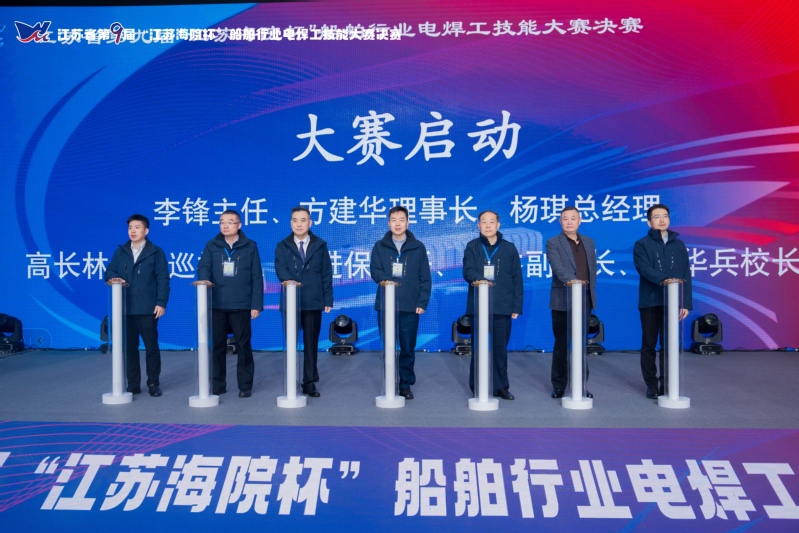 大赛启动仪式上,随着台上领导嘉宾共同按下启动按钮,江苏省第九届“江苏海院杯”船舶行业电焊工技能大赛决赛正式开赛!