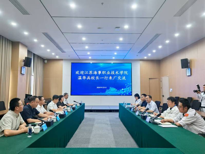 座谈交流中,温华兵高度评价了招商局金陵船舶(南京)有限公司在造船领域的突出贡献和影响,并回顾了双方的合作渊源。他表示,校企深度融合是职业教育对接产业需求、提升办学质量的核心路径,希望双方在人才培养、师资共建,特别是在产教融合共同体、产业学院建设上加强交流、深化合作。