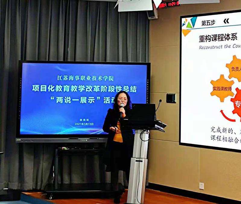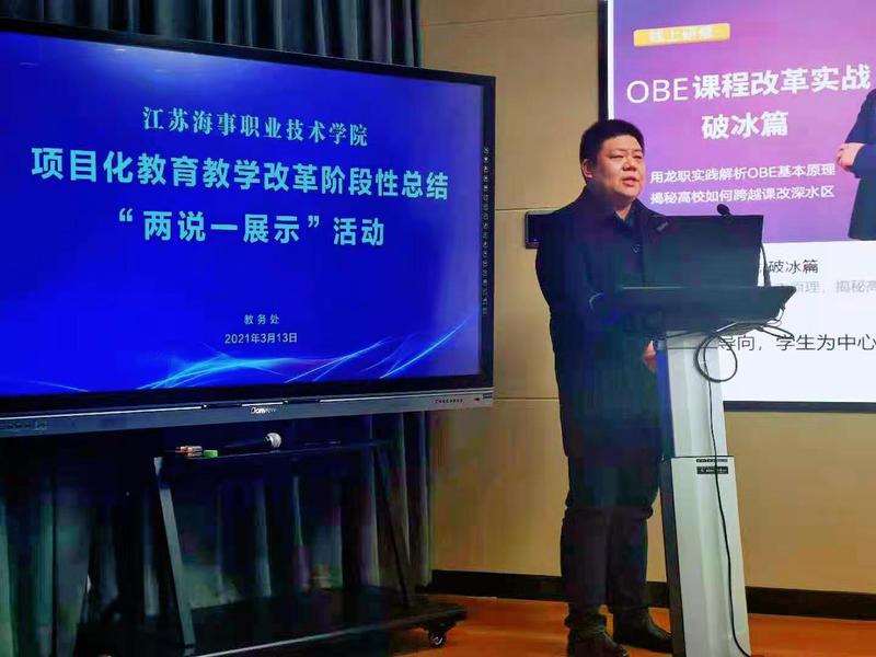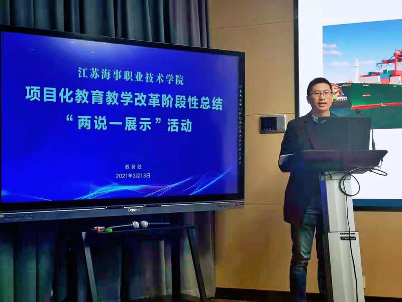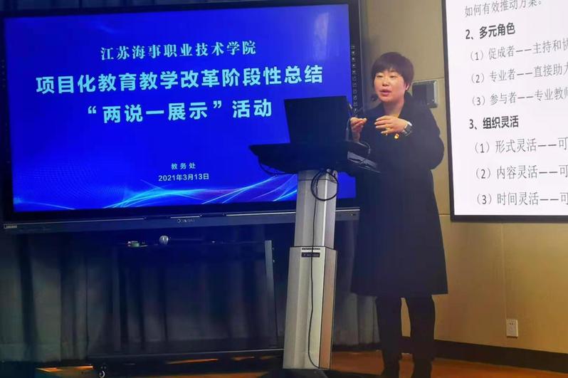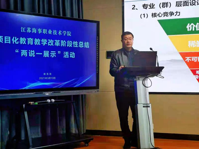 第一阶段中,教务处处长王涛、航海学院院长丁振国、机电学院院长马洪涛、船舶学院副院长杜训柏、经管学院副院长王鹏、国教院副院长张圆圆、体育教学部主任方爱华、教务处副处长李淼依次分享了对项目化教育教学改革的理解和体会,同时以某一专业为例,把理念落实到改革案例中,提出了具体的实施计划,展示了指导能力。