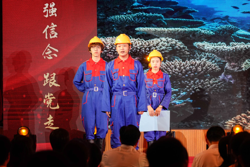 活动开始,学校“青年讲师团”成员围绕党史伟大精神、校史红色基因、航运强国故事等主题,以演颂的形式呈现了一堂生动的主题“信仰公开课”。通过革命时期中国共产党在浴血奋战的道路上披荆斩棘,突出重围,走过万水千山,走出世界奇迹的动人故事,白下路斛斗巷新十九号,江苏海院与伟大祖国同频共振的故事,中国航运事业从波澜壮阔的改革开放,到蓬勃发展新时代的巨大前进的故事,广大团员青年看到了青春的中国、希望的中国、担当的中国。