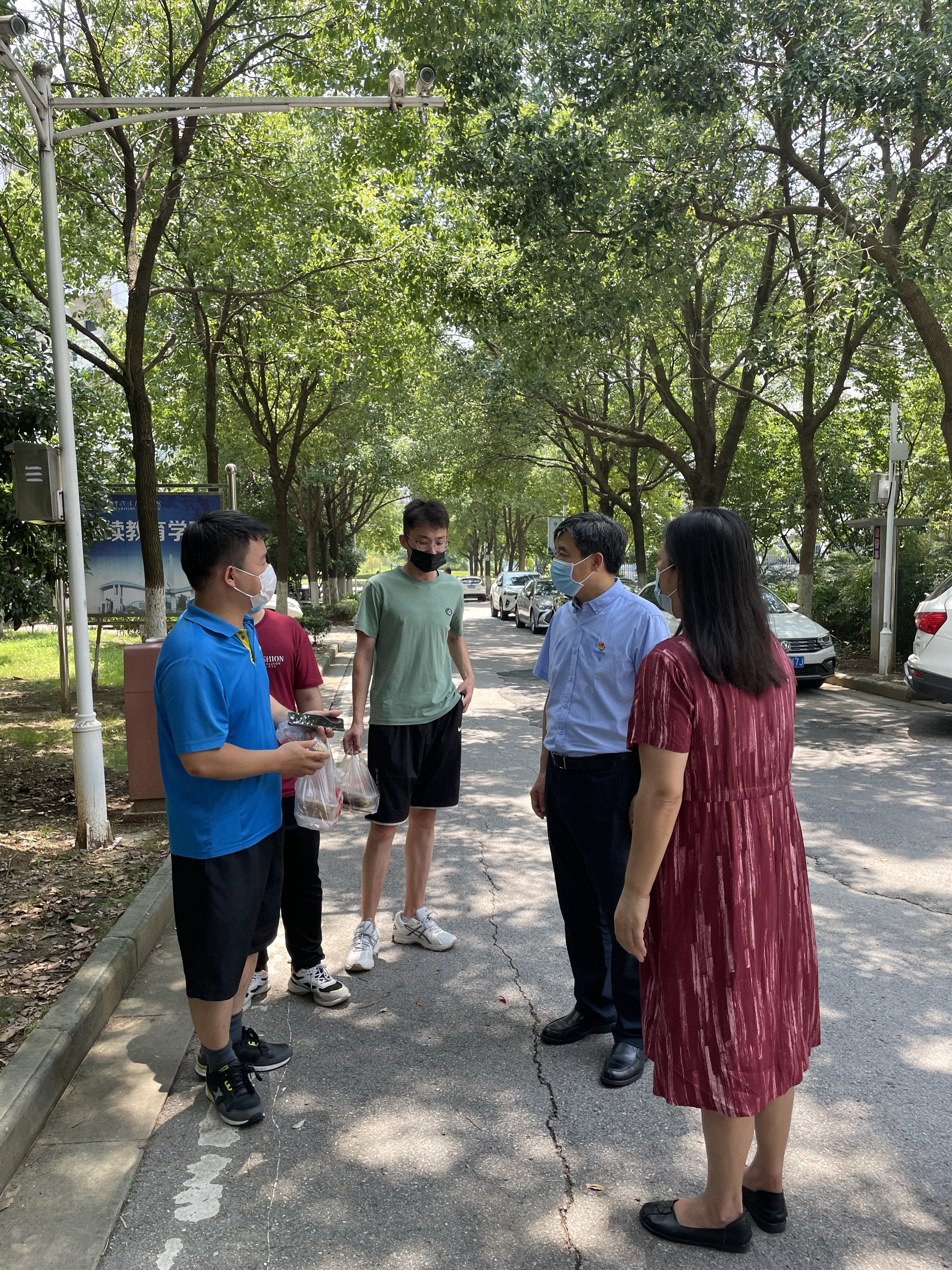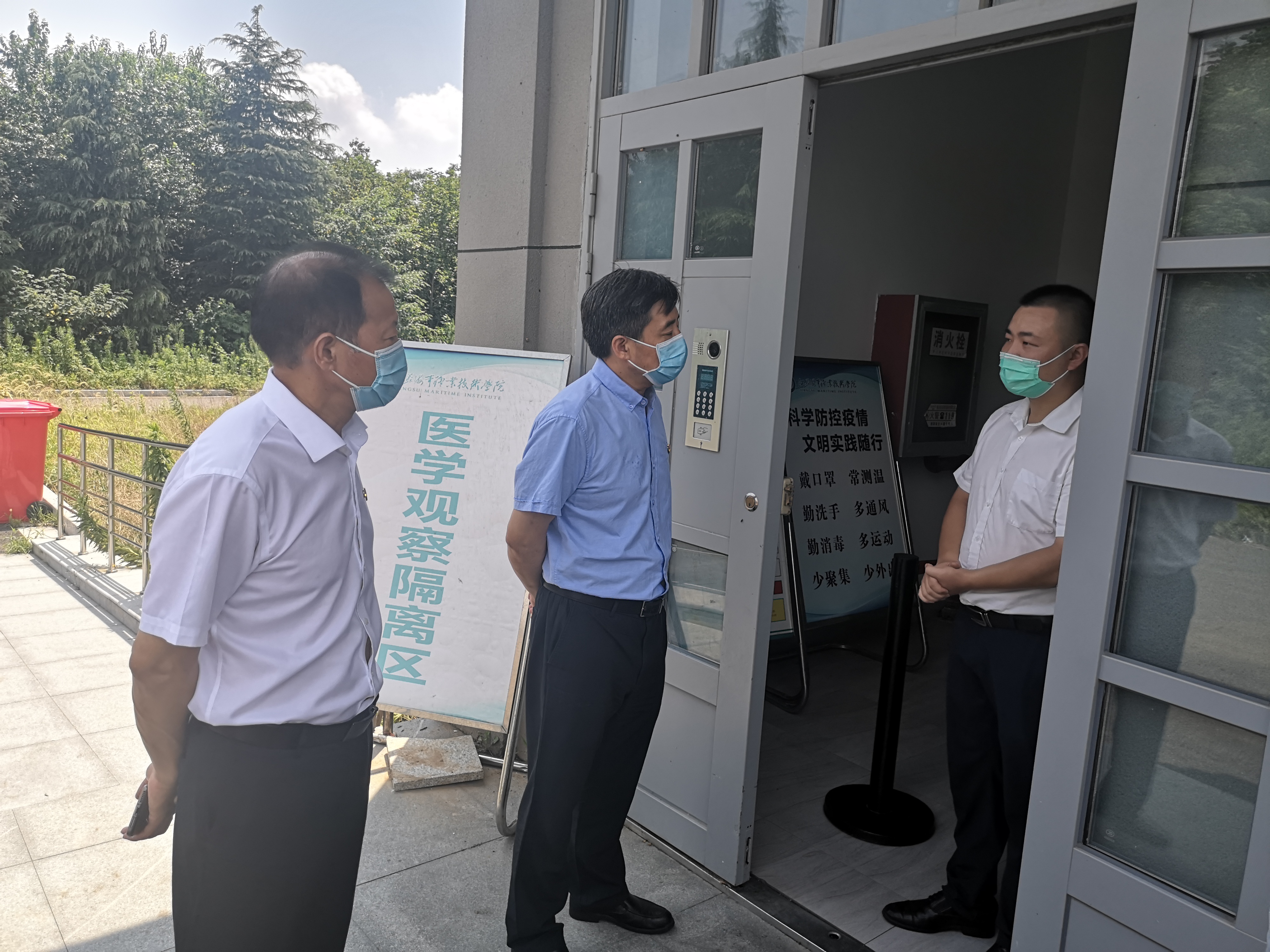 为深入贯彻落实全省教育系统疫情防控工作视频会议精神,进一步巩固疫情防控工作成果,将我校疫情防控工作抓紧抓实,7月31日上午,学校党委书记刘红明、副校长田乃清、党委宣传部部长刘桂香一行在疫情防控领导小组办公室部分成员的陪同下,先后来到学校观察隔离点、学生公寓、思源食堂等地,实地检查防疫工作、慰问一线工作人员。