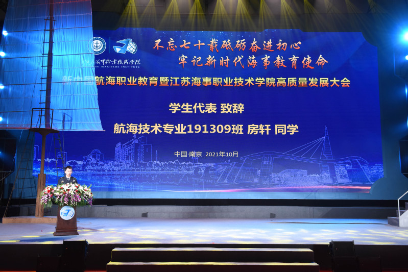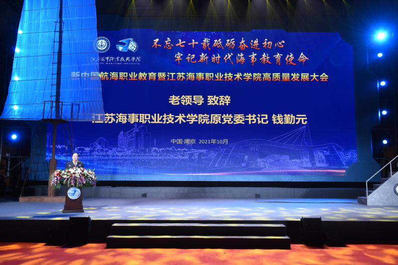 为热烈庆祝建校70周年,奋力推动学校高质量发展走在海事类高职院校前列,开启高水平应用型海事类高等院校建设新征程,10月30日,学校采用线上线下同步直播形式隆重举行新中国航海职业教育暨江苏海事职业技术学院高质量发展大会,校党委班子全体成员和部分老领导、老教师、杰出校友代表出席大会。大会共分为四个阶段。