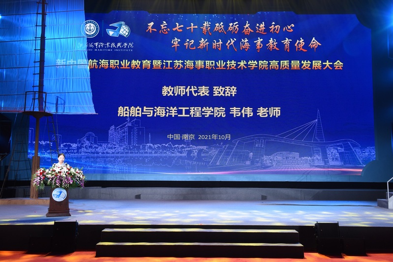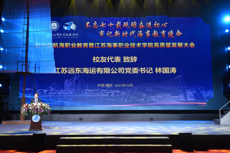 会上,航海技术专业191309班学生房轩、船舶学院教师韦伟分别代表师生致辞;江苏远东海运有限公司党委书记林国涛先生代表海内外校友致辞;老领导、江苏海院原党委书记钱勤元老师致辞。学生代表、教师代表、校友代表和老领导代表激情洋溢的致辞,都饱含了对学校的深情厚谊,凝聚了大家对学校未来发展的美好期待。他们的深深祝福、铿锵誓言和殷切希望,都将转化为推动学校未来发展的强大合力。