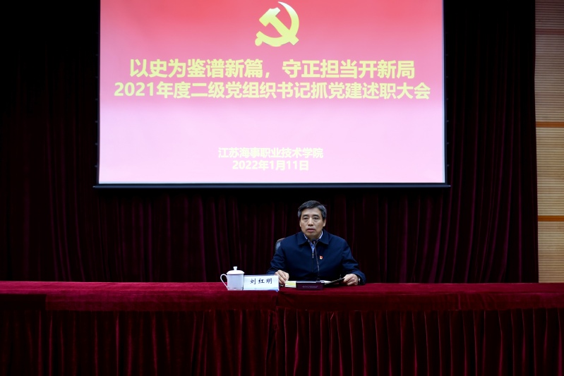1月11日下午,2021年度二级党组织书记抓党建述职评议会在大报告厅召开。学校领导班子成员、全体中层干部参加了会议。会议由校党委书记刘红明主持。