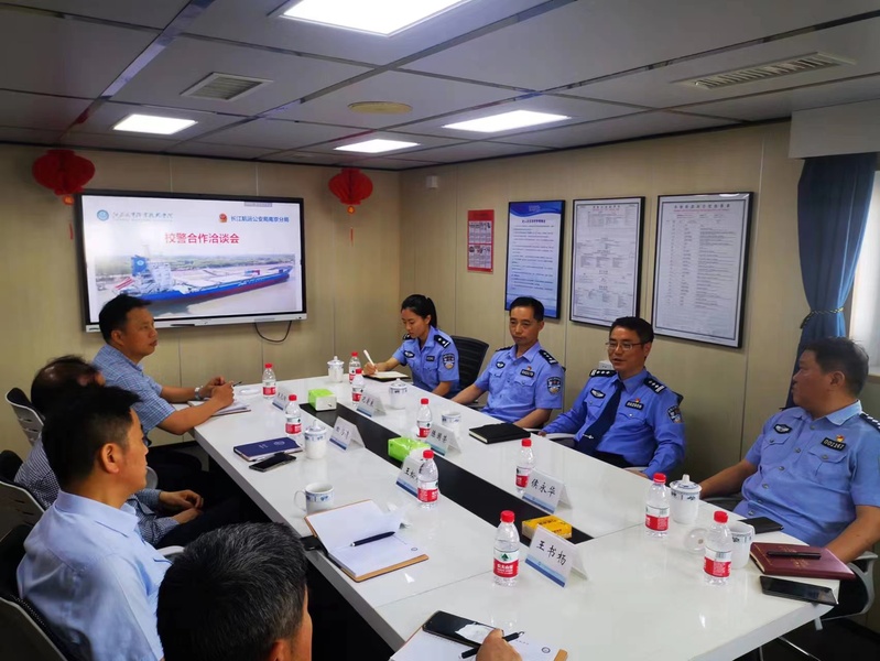 5月18日上午,长江航运公安局南京分局党委委员、政治处主任陈国荣一行来到我校板桥校区实船实训基地就校警共建合作事宜开展了调研和洽谈,副校长田乃清热情接待了陈国荣一行来访。