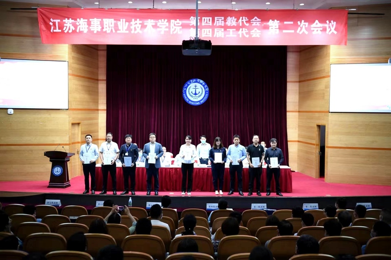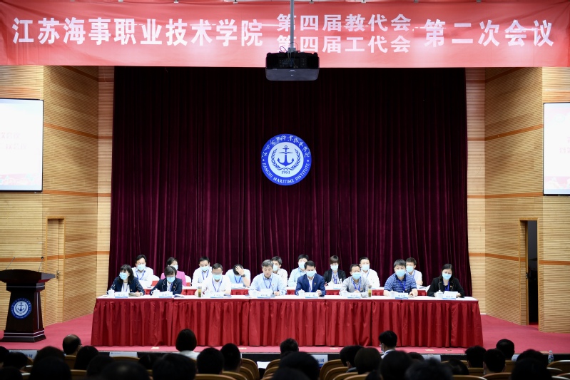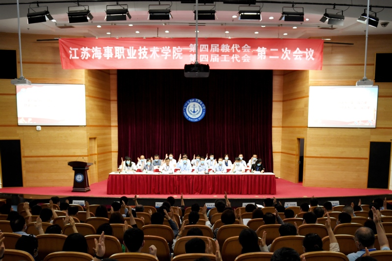5月21日下午13:45,四届二次“两代会”第二次全体会议在图书馆大报告厅举行,党委副书记王卫兵主持会议,校长万健与工会主席王国清签订了“三双”集体协议。大会审议通过了《工会工作报告》《江苏海事职业技术学院教职工代表大会实施细则》(修订)《学校2021年财务预算执行情况和2022年财务预算情况的报告》《四届一次教代会代表提案落实情况的报告》《工会经费审查报告》《四届二次“两代会”决议》。