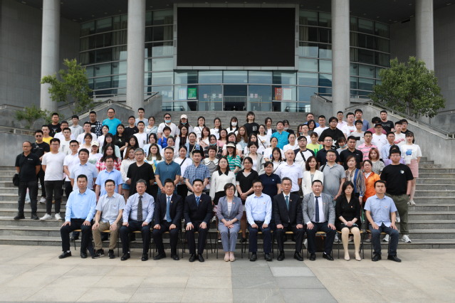开学典礼结束后,全体与会人员移步图书馆门前合影留念。