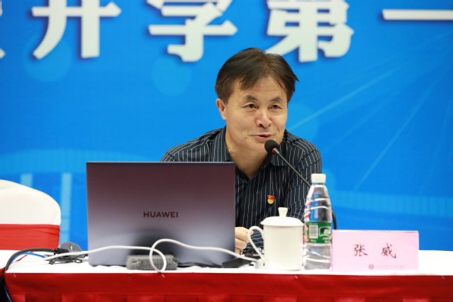随后,马克思主义学院院长张威教授以“正确处理三大关系”为主题向全体新生讲授了别开生面、意义深远的开学第一课。张威教授谈到,年轻的学子要处理好与他人的关系、与国家的关系和与自身的关系等“三大关系”,才能做到“穷则独善其身,达则兼济天下”,培养家国情怀,为国家社会的发展贡献应有的力量。