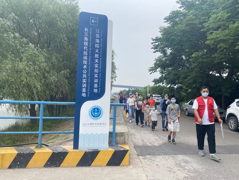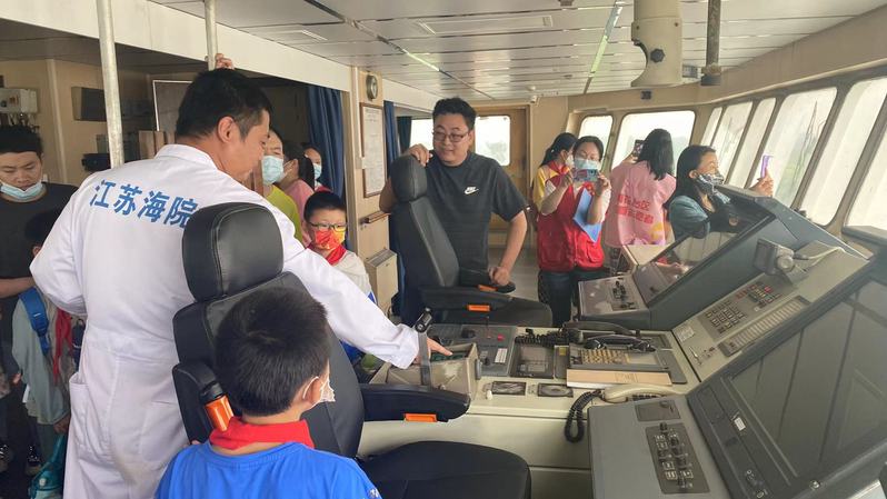 为庆祝国际六一儿童节,帮助青少年儿童健康成长,5月28日,雨花经济开发区天后社区组织了15户小学生家庭来到我校板桥校区实船实训基地开展“小小航海家”庆六一活动。