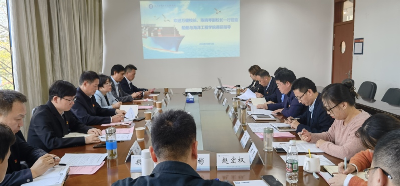 10月12日下午,学校校长万健,副校长陈晓琴,校党政办主任顾育,教务处处长王涛,人事处处长张军和科技处处长王宏明一行到船舶与海洋工程学院开展调研指导。船舶学院班子成员、内设机构负责人和教师代表参加会议交流,会议由宋雅兵主持。