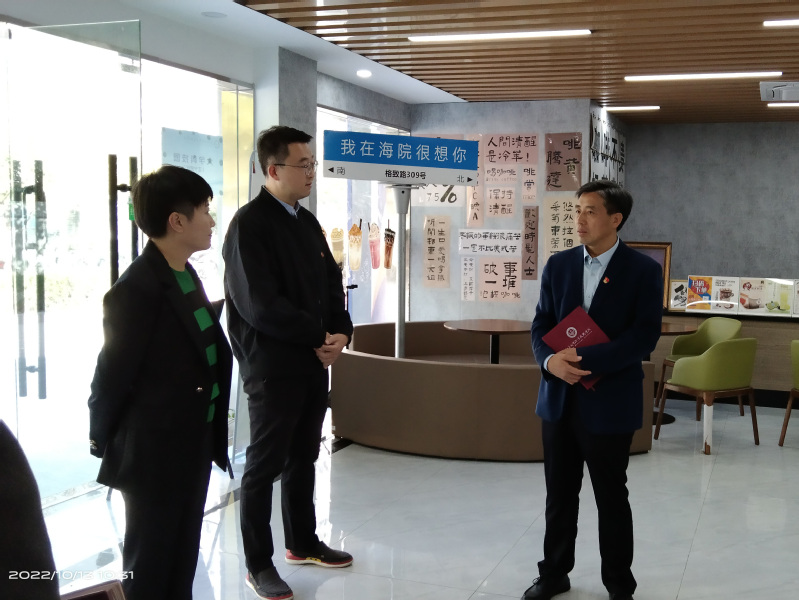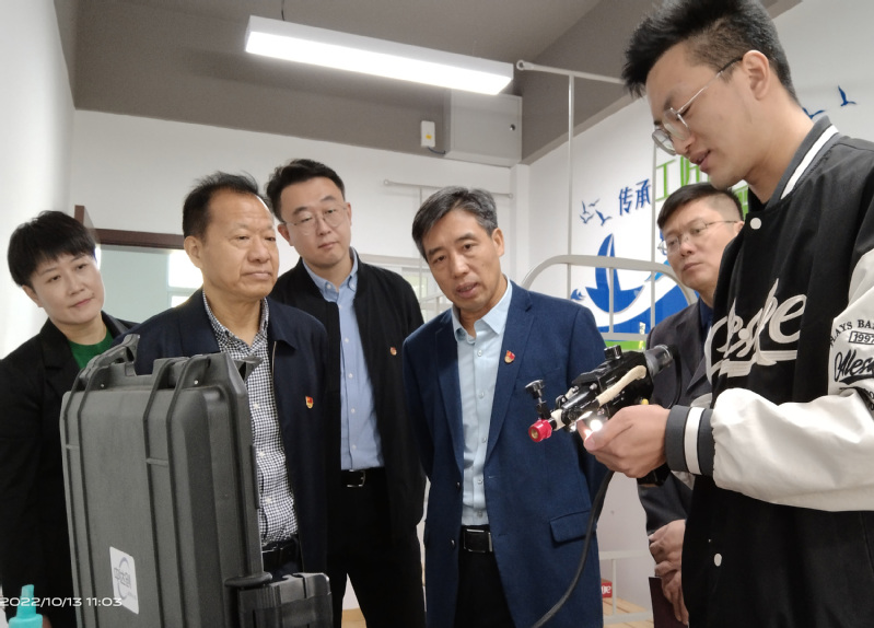 刘红明书记一行听取了“创客方舟”现有整体设计布局及入驻项目情况介绍,实地考察了学生的创新创业项目,与部分创业企业负责同学亲切交流,并在管理经营模式创新、产教研创深度融合等方面对创新创业学院下一步工作和发展提出了明确意见。