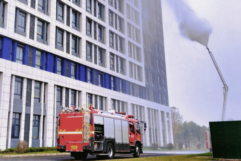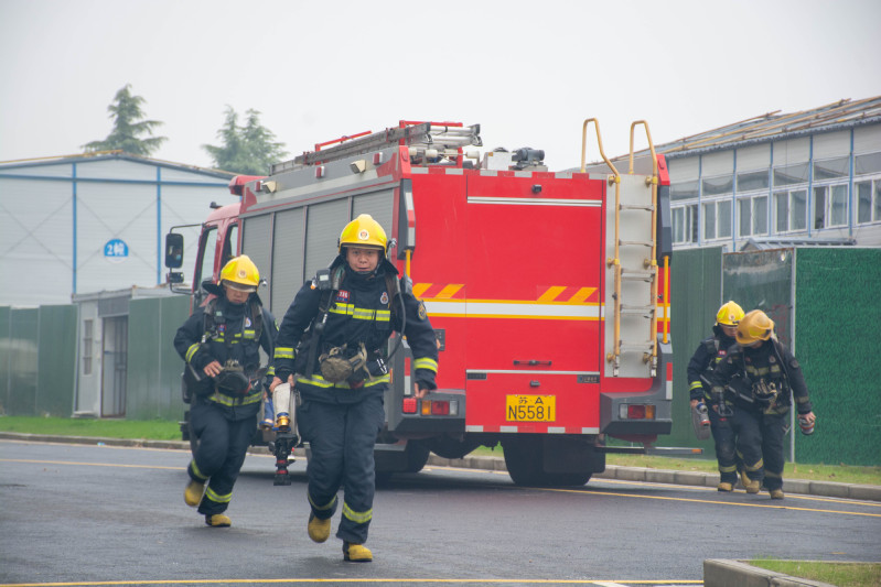 演练由公寓全员应急疏散、消防官兵灭火救援两部分组成。伴随公寓消防警报的突然响起,1455名入住学生用时大约15分钟分别从公寓南、北楼的东、西三个消防通道紧急疏散。学生在疏散时按照逃生要点进行,熟练运用逃生技能,成功疏散至篮球场西北区域。消防官兵随即通过消防车云梯将被困人员从高层建筑救出,运用高压水枪对建筑体外立面进行喷射控制火情(模拟),进入楼宇对高层起火点使用消火栓进行明火扑灭。