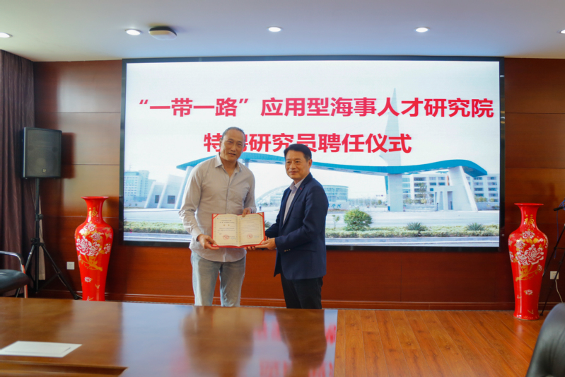 活动期间,万健陪同翟墨船长参观了学校大型船舶操纵模拟器、船舶智能化机舱实验室和校史馆,并为其颁发了“一带一路”应用型海事人才研究院特聘研究员证书。