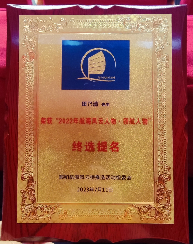 田乃清荣获“2022年航海风云人物·领航人物”终选提名。