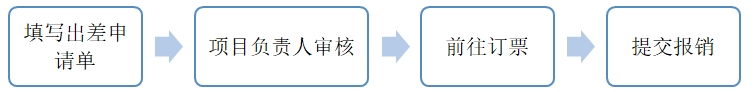 经办人填写出差申请单----项目负责人审核-----前往订票-----出行结束后选择发票前往报销----到智能报销系统进行报销申请。