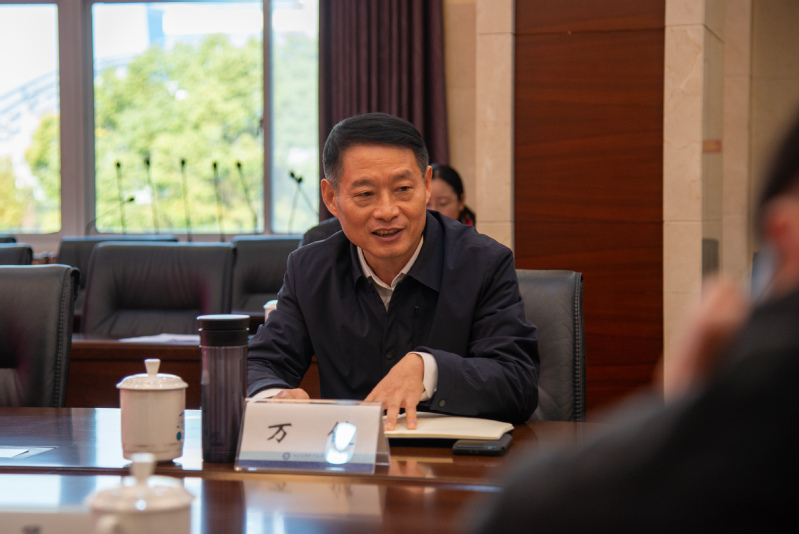 调研交流会上,万健代表学校对赵勇一行的到来表示热烈欢迎。他简要介绍了学校办学历史、办学特色、办学成效和近年来的发展情况,围绕调研主题就职业教育的办学特点、技术技能人才培养的优势以及我校军地定向培养模式的现状、未来服务政府行业主管部门定向培养需求办学基础和资源优势等方面做了重点介绍。
