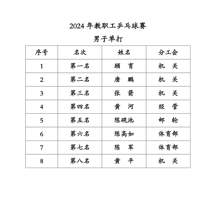 2024年教职工乒乓球单打比赛圆满落幕