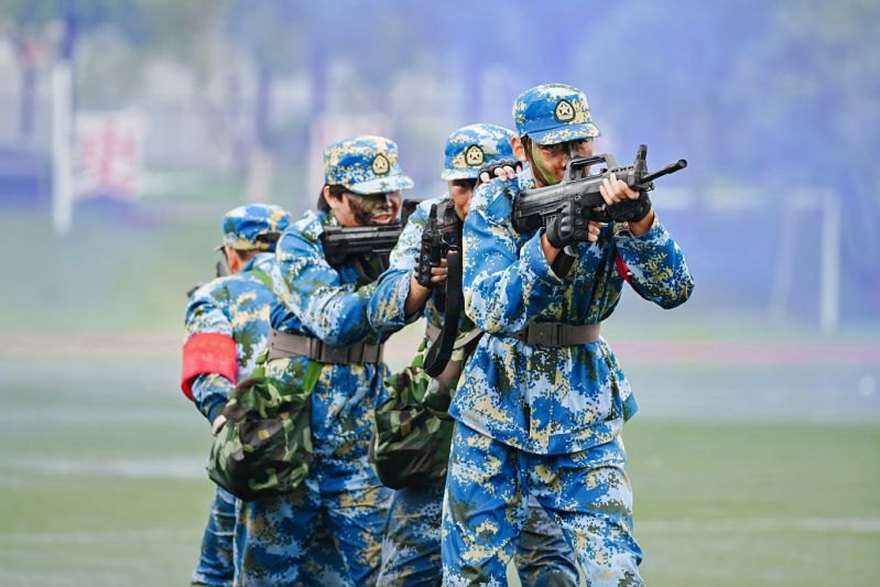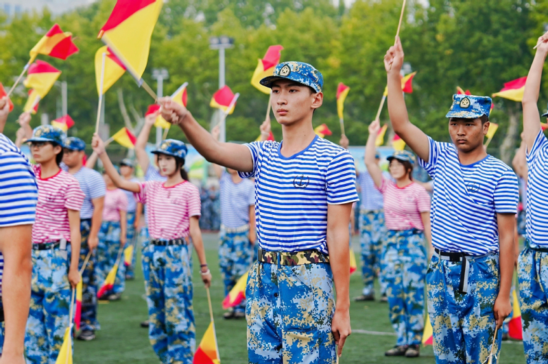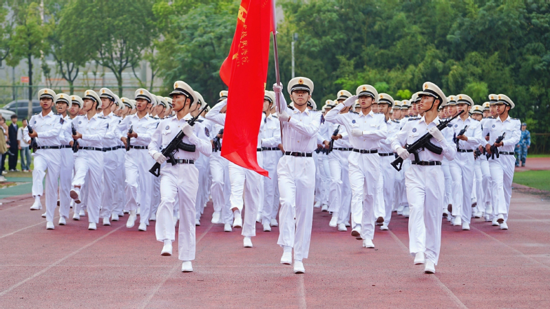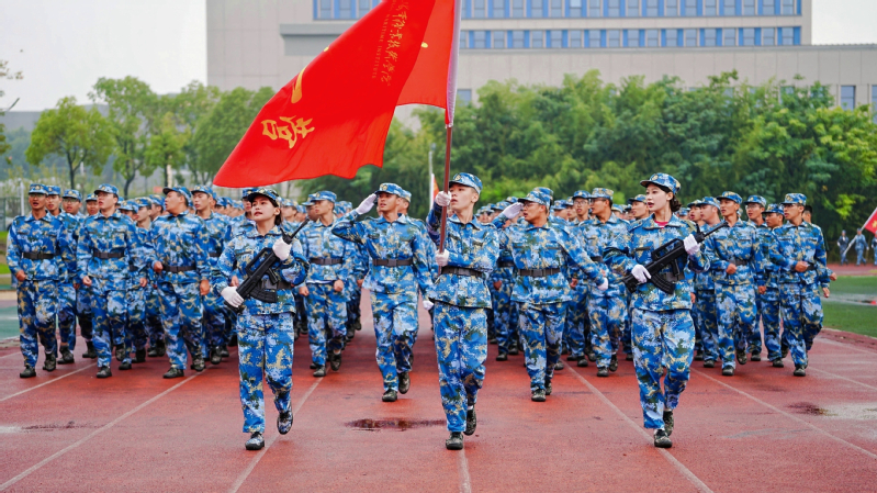上午9时,伴随着雄壮的国歌声,五星红旗冉冉升起,拉开了开学典礼的序幕。万健宣布军训成果汇报按计划进行,2025级新生军训团分列式方阵在军训团旗帜的引领下,迈着整齐的步伐,以意气风发的姿态,振奋昂扬的精神,逐一走过主席台接受检阅。战术演练、军体拳、匕首操、旗语方队展演精神饱满、铿锵有力,一招一式尽显蓬勃锐气,用汗水书写成长,用坚持诠释青春,为这段迷彩岁月画上了圆满的句号。