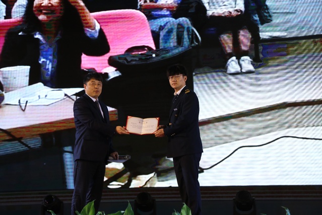 闭幕式上,现场师生通过短视频《第二届海峡两岸航海文化节系列活动集锦》共同回顾了本届航海文化节的精彩瞬间。本届文化节以“逐梦大海,筑梦青春”为主题,在为期近一个月的时间里,来自海峡两岸7所院校的师生代表共同参与航海文化讲座、航海文化行、魅力南京行、素质拓展训练、视频比赛、书法比赛、诗文比赛、文艺表演等丰富多彩的系列活动,携手感知航海技能知识和传统文化的魅力,创作了许多优秀的作品。缪克银、陈佑莉为“城市·历史·记忆”短视频比赛开奖,并为获奖代表颁奖;王玉彪、李军公布了“追忆航海历史,描绘未来梦想”书画大赛的获奖名单,并为获奖者代表颁奖;唐春辉、孔志光公布了“讲好郑和故事,传承航海文化”诗文比赛的获奖名单,并为获奖者代表颁奖。
