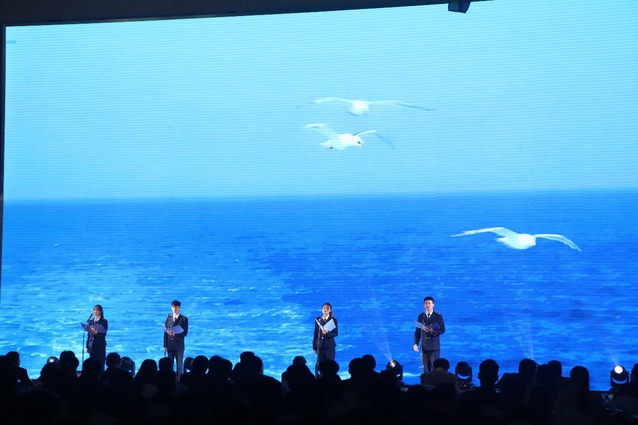 闭幕式分别在江苏海事职业技术学院和台湾龙华科技大学设立会场。来自台湾龙华科技大学、台湾东南科技大学、江苏航运职业技术学院、浙江国际海运职业技术学院、天津海运职业学院、延安职业技术学院和我校的教师和青年学生代表参加了闭幕式,海峡两岸7所学校的师生代表近500人通过现场活动和视频连线的方式相聚云端,共话海洋梦想,共唱青春旋律。
