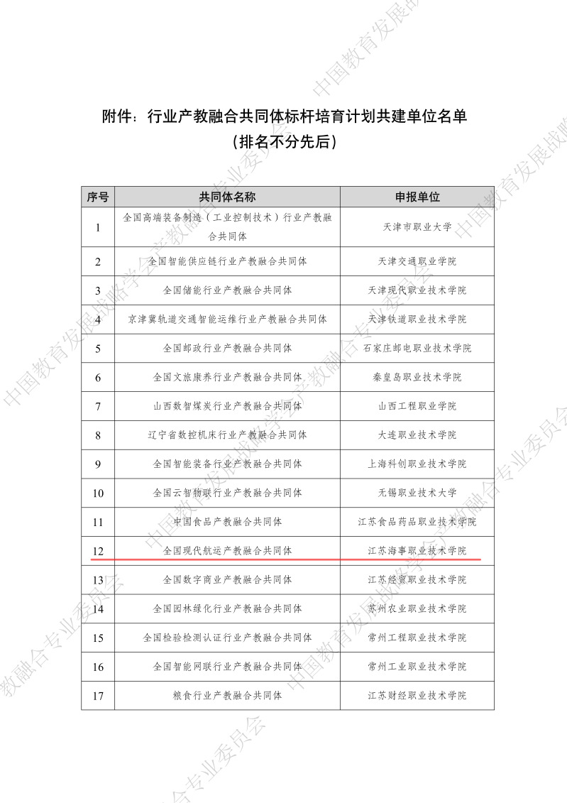近日,中国教育发展战略学会公布了行业产教融合共同体标杆培育计划共建单位名单,我校申报的全国现代航运产教融合共同体成功入选,成为全国50个共建单位之一。