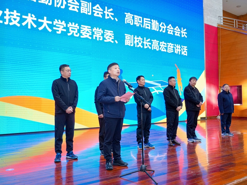 上午7时40分,开幕式准点启动。我校副校长郑军主持开幕式,党委书记万健致开幕辞。江苏省高等学校后勤协会副会长、高职后勤分会会长、南京工业职业技术大学副校长高宏彦在开幕式上的讲话中表示,后勤工作是学校事业发展的重要支撑,希望通过此次乒乓球赛搭建起校际交流的坚实平台,促进高校间互学互鉴,进一步深化务实合作,为高校建设和高质量发展提供坚强有力的后勤服务保障。江苏省高等学校后勤协会副会长兼秘书长黄在宇宣布比赛正式开始。