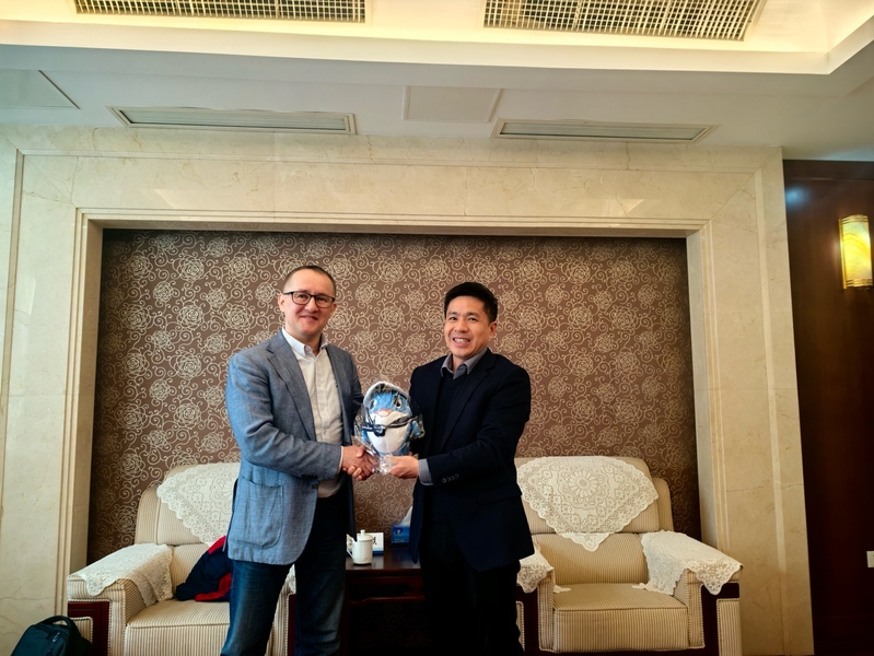 温华兵首先对马尔科夫·安德烈表示热烈欢迎,他介绍了学校的历史沿革、办学特色以及近年来在国际化办学方面取得的成绩以及学校在航海技术、轮机工程、船舶制造等领域的专业优势。安德烈对温华兵的热情接待表示感谢。他表示哈萨克斯坦“一带一路”国家院校和企业交流协会将发挥哈中教育桥梁作用,并期待与我校在哈学生来华留学、“中文+职业技能”培训等领域开展实质性合作。