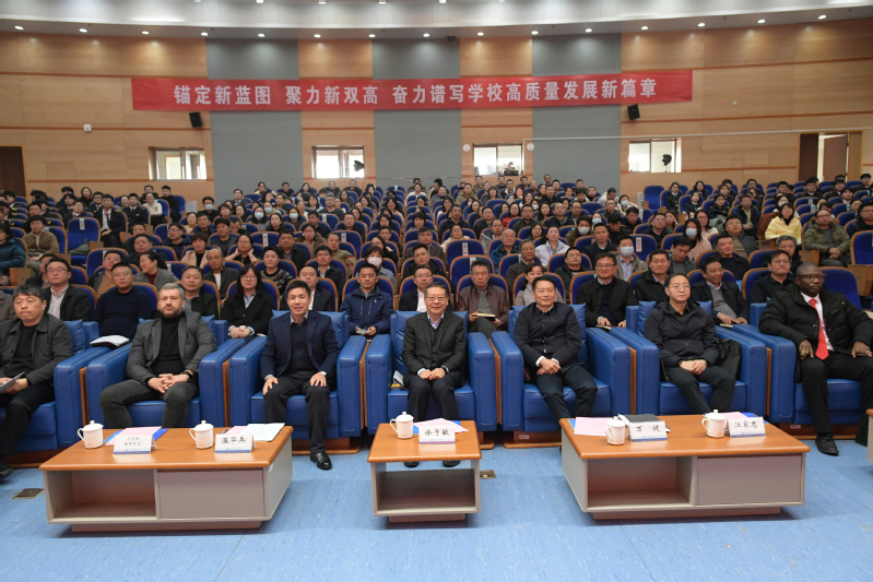 12月19日,我校在图书馆大报告厅召开第二期“双高计划”建设推进会,会议主题为“锚定新蓝图、聚力新双高,奋力谱写学校高质量发展新篇章”。江苏省教育国际交流协会会长徐子敏,校党委书记万健、校长温华兵等党委班子成员与招商局金陵船舶(南京)有限公司总经理江家忠及海外院校代表共同出席会议。学校副科级以上干部、专业负责人、课程中心主任、教师代表及学生代表参加会议。会议由副校长陈晓琴主持。