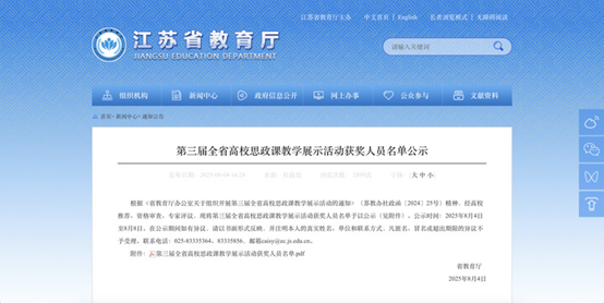 Good News: Our College's Ideological and Political Education Teacher Has Won the Special Prize in the Higher Education Ideological and Political Education Teaching Exhibition Competition in Jiangsu Province and Advanced to the National Competition